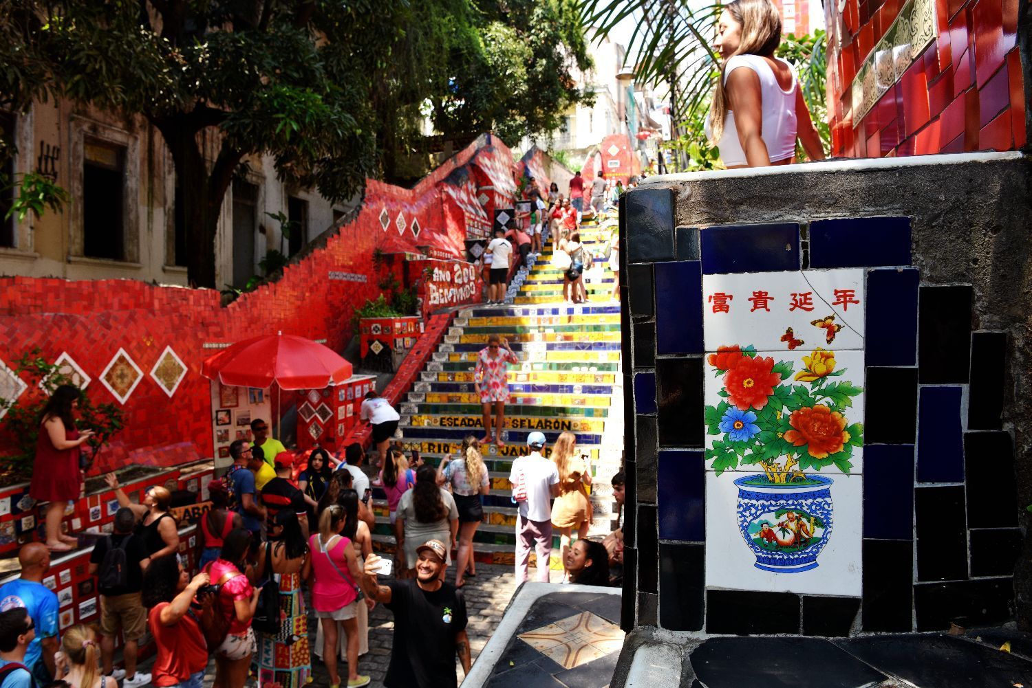 中新社报道,跟随里约热内卢共和国博物馆研究员安德烈·安迪·安古洛,来到里约热内卢闻名遐迩的城市地标——塞拉隆阶梯。这是由智利艺术家塞拉隆历时20余年打造的“彩色阶梯”。