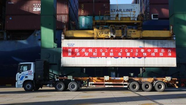 26日,随着载有380个集装箱、重约8000吨智利车厘子的“以星奥克兰”轮靠泊天津港太平洋国际集装箱码头,天津港迎来2024至2025季中国北方首船智利进口车厘子。
