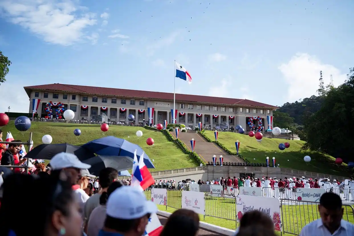 2024年12月31日,巴拿马民众在首都巴拿马城参加正式收回巴拿马运河主权25周年纪念活动。新华社