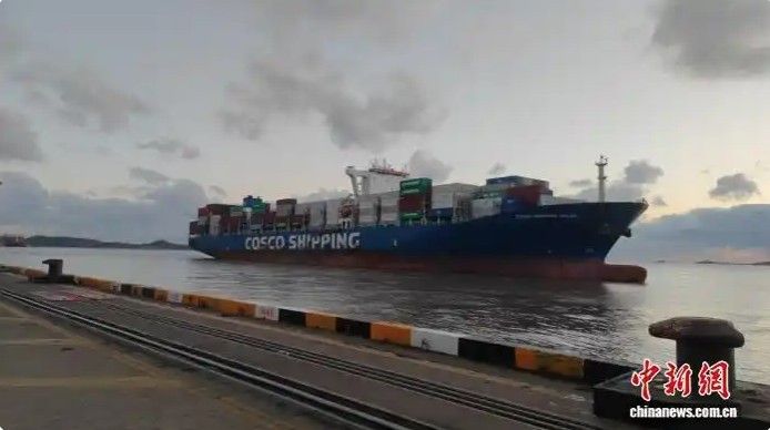香港籍“中远海运伏尔加河”轮26日靠泊洋山港一期码头。中新网