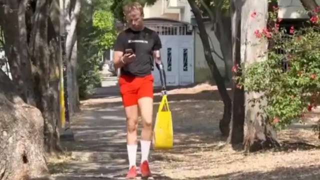 阿尔贝托·奥罗斯科戴着E-Redi手臂走在街上。
