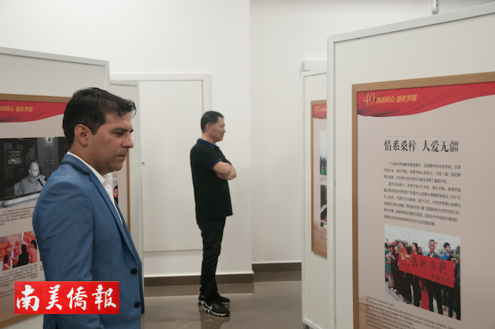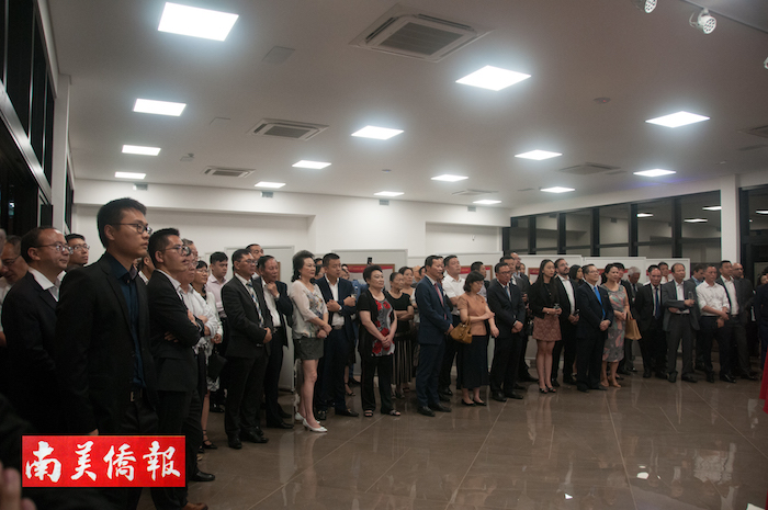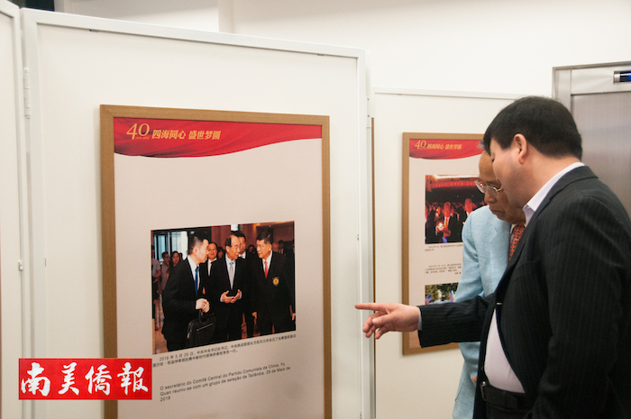 【南美侨报记者袁一平报道】《华侨华人与改革开放40周年》图片展暨《南美侨报》、圣保罗亚文中心乔迁酒会,2018年12月19日晚在RUA ESTADOS UNIDOS 659号举行,中国驻圣保罗总领事陈佩洁、《南美侨报》社长、圣保罗亚洲文化中心总裁方三京、巴西华人协会会长张伟、中资企业家协会副会长张广华为报社和亚文中心揭牌。当天,一百多位巴西来宾及各界侨领出席庆典活动。 图片 罗丹 摄